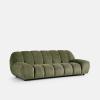 Ligne inspirée des codes 70's. Effet matelassé tout en courbes. Revêtement en velours épais et chenillé à l'aspect brillant, révélant des nuances de couleur selon la lumière... Le canapé Nuria n'a qu'une vocation : la détente, sans compromis.Enveloppant, cosy et graphique, la nouvelle pièce maîtresse du salon. Installez-vous. Fabriqué en Italie.
