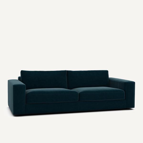 Canapé velours, Skander Bleu paon 3P