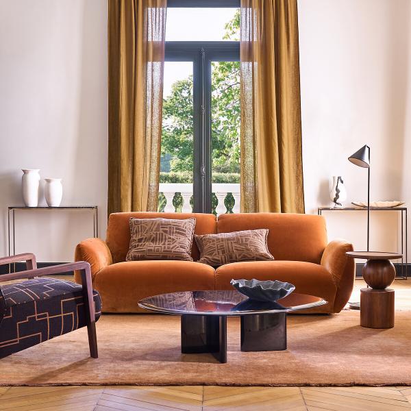 Doux et enveloppant. Spogano se démarque par une assise au ras du sol et des proportions généreuses. Ses lignes rassurantes et son rembourrage ultra confortable en font un canapé totalement dédié au bien-être. L'art de vivre signé AMPM.Fabrication italienne.