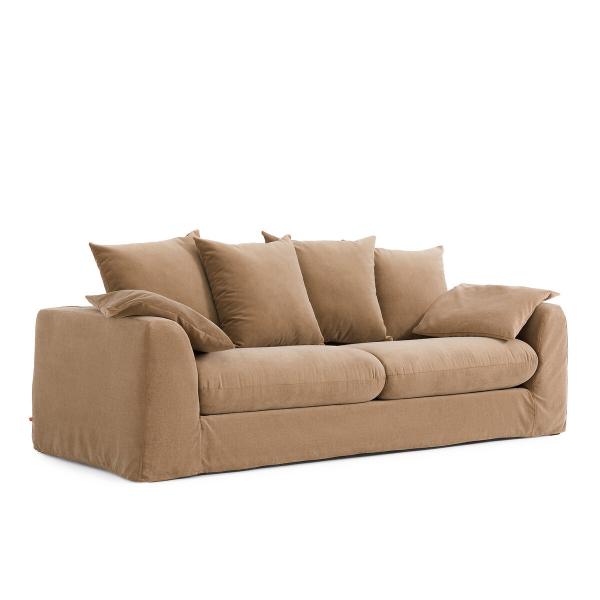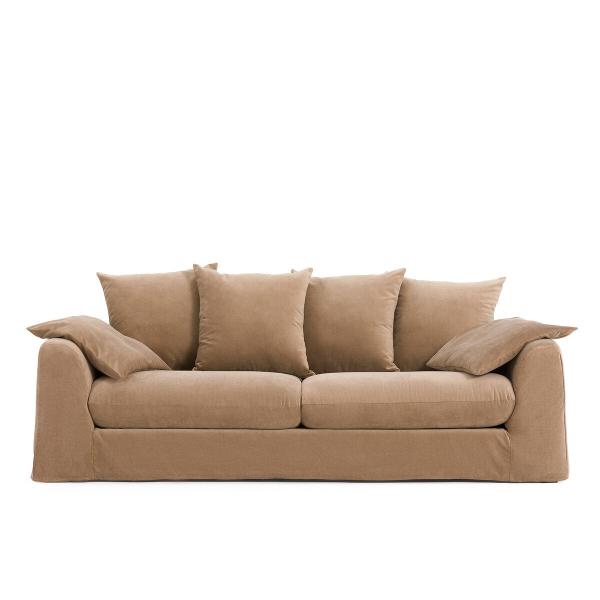Canapé velours stonewashed, Marcoli Ficelle 4P