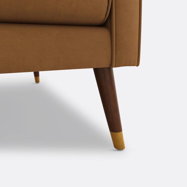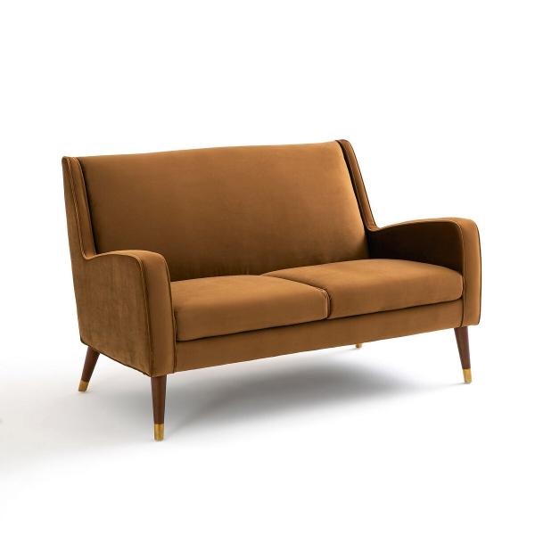 Le canapé (Y) 2 places : des lignes simples, des pointes de pieds finition laiton, un revêtement souligné par un piping chic et délicat...
