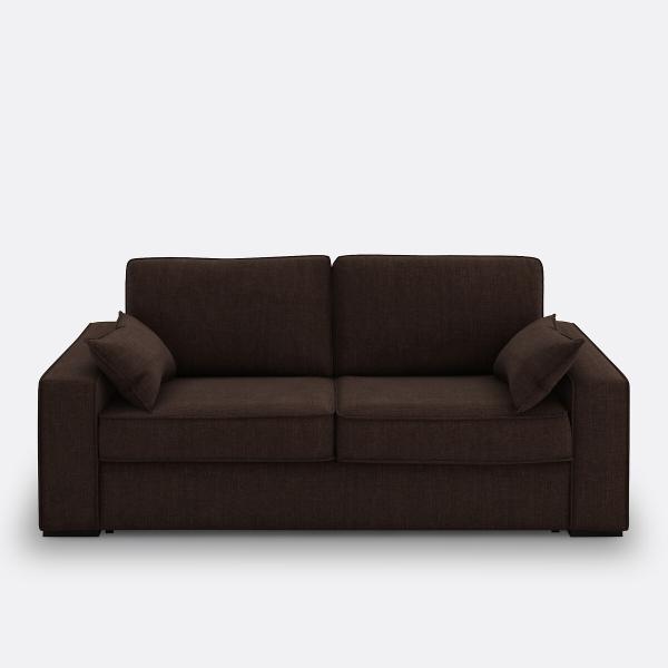 Canapé-lit coton/lin, mousse premium HR, Cecilia Marron chocolat 2P