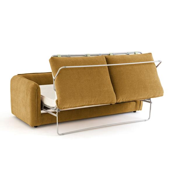 Grâce au système couchage express, le canapé lit se déplie en un clin d'œil (à l'aide d'une petite poignée derrière les coussins de dossier), sans effort et sans enlever les coussins.