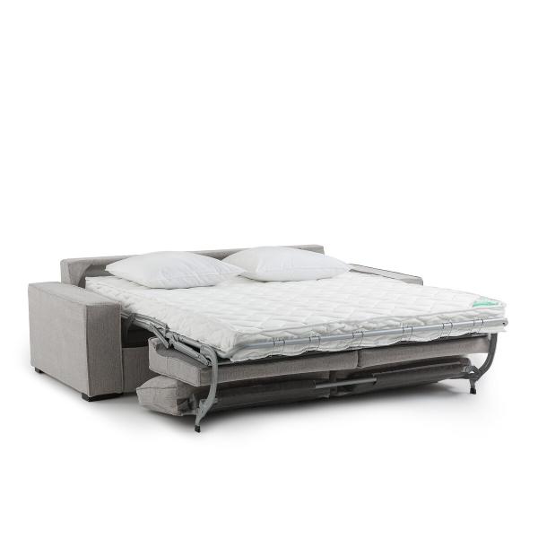 Grâce au système couchage express, le canapé lit se déplie en un clin d'œil (à l'aide d'une petite poignée derrière les coussins de dossier), sans effort et sans enlever les coussins.