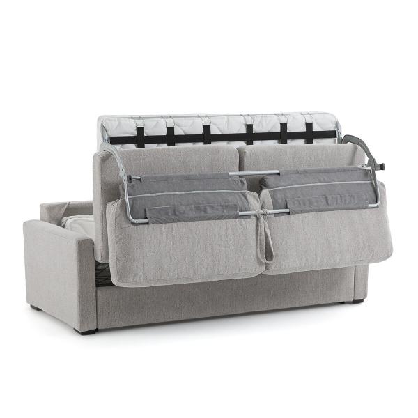 Grâce au système couchage express, le canapé-lit se déplie en un clin d'œil (à l'aide d'une petite poignée derrière les coussins de dossier), sans effort et sans enlever les coussins.