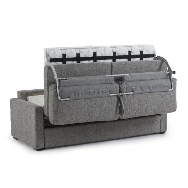 Grâce au système couchage express, le canapé-lit se déplie en un clin d'œil (à l'aide d'une petite poignée derrière les coussins de dossier), sans effort et sans enlever les coussins.