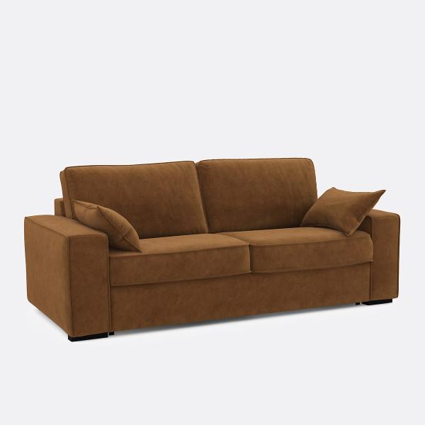 Canapé-lit velours, mousse Cécilia Cannelle 4P