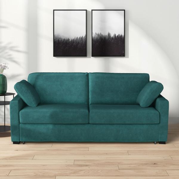 Avec ce canapé-lit aux manchettes droites, vous bénéficiez du confort d’un vrai lit et d’un matelas mousse. Le canapé-lit Timor prendra place sans complexe dans le salon ou dans la chambre et vous offrira des nuits d'un grand confort.Grâce au système couchage express, le canapé-lit se déplie en un clin d'œil (à l'aide d'une petite poignée derrière les coussins de dossier), sans effort et sans enlever les coussins.