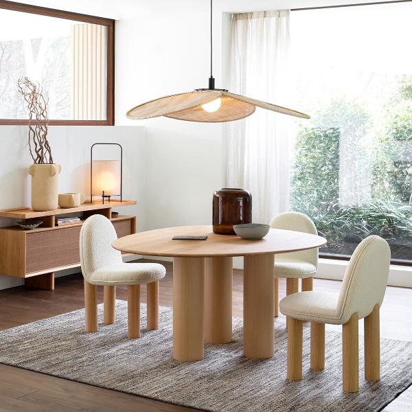 - Pieds cylindriques en hévéa massif plaqué chêne FSC®, finition huilée