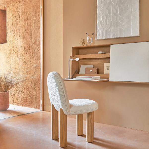 Exclusivité signée AMPM, la chaise Ganalla surprend par sa silhouette inédite et son confort.Un passepoil relie l’assise au dossier bas et en souligne les courbes. Autre détail soigné : les pieds arrière biseautés au contact de la structure.