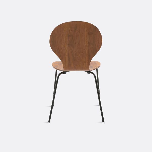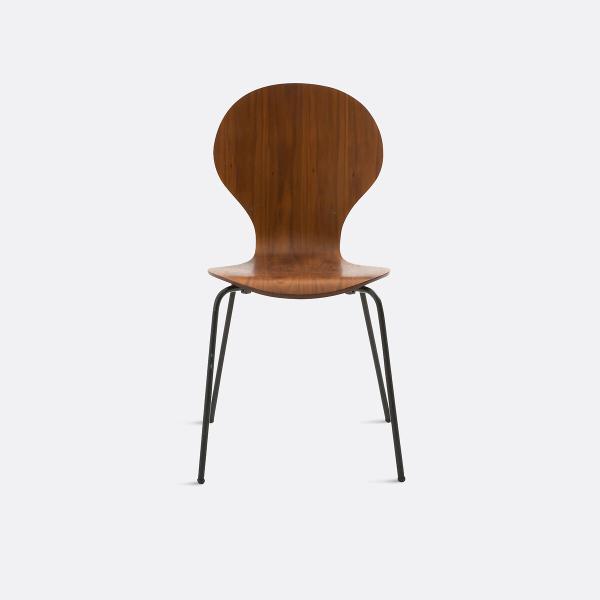 - Coque en multiplis replaqué noyer, finition vernis nitrocellulosique.
