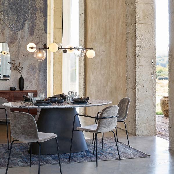 Son assise épouse la silhouette pour un maintien ferme mais très confortable. Le mariage du métal au velours fait dialoguer modernité et noblesse des matériaux. Une chaise iconique signée AMPM.