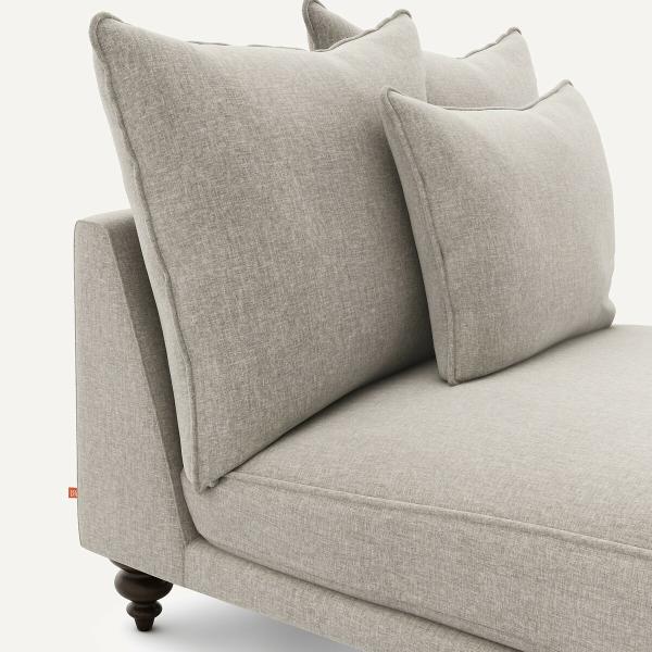- Dossier (2 coussins) : fibres polyester et plumes d’oie. 64 x 64 cm