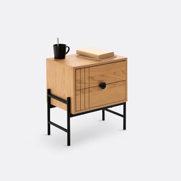 Chevet 2 tiroirs, Clara Chêne/noir T. Unique