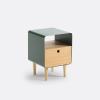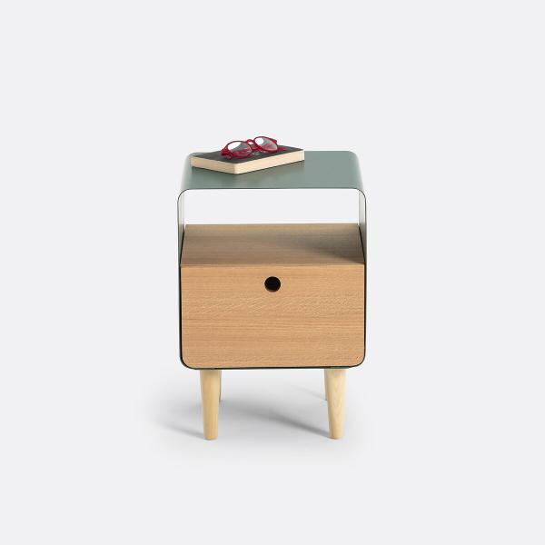 Chevet bois et métal, Jimi Vert/bois T. Unique