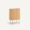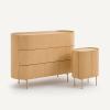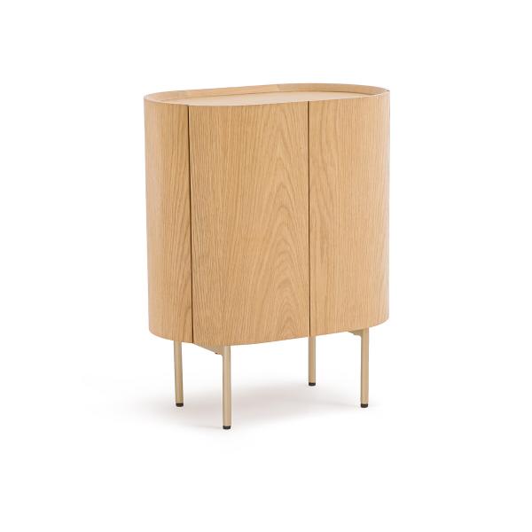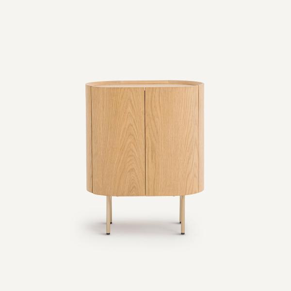 Le chevet en chêne Aslen reprend les codes Art déco avec des courbes qui adoucissent les volumes. Son piètement fin lui confère un côté aérien.Description