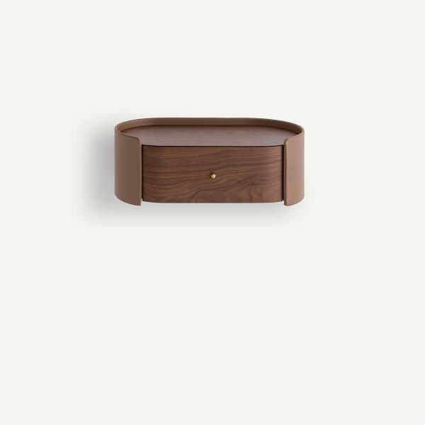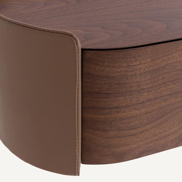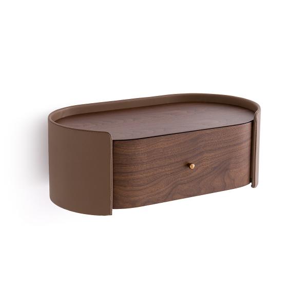 Chevet suspendu en noyer/cuir, Firmo Noyer T. Unique