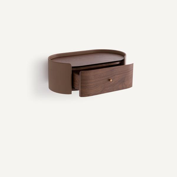 - Tiroir en MDF plaqué noyer FSC®, finition nitrocellulosique