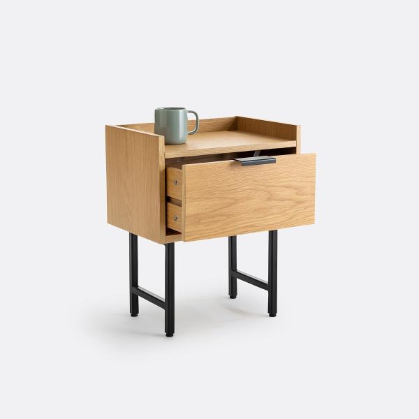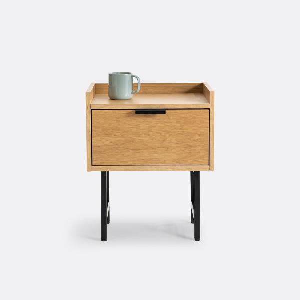 Le chevet Volga se caractérise par ses lignes droites et épurées. On aime l'association des matières bois et acier. Il trouvera sa place dans la chambre.