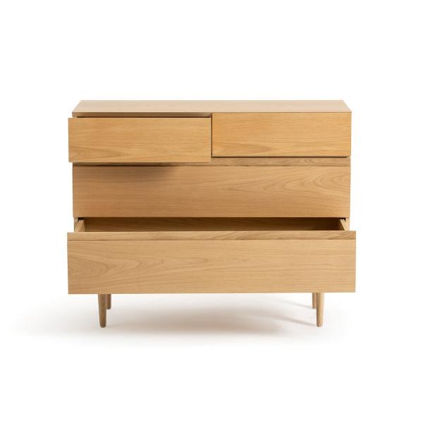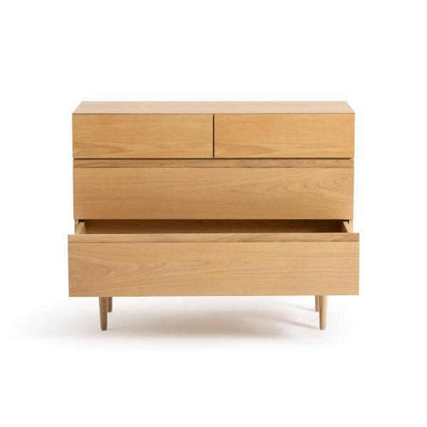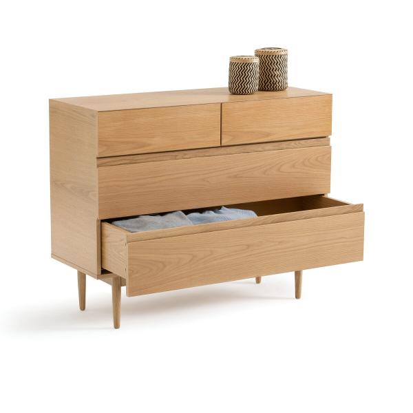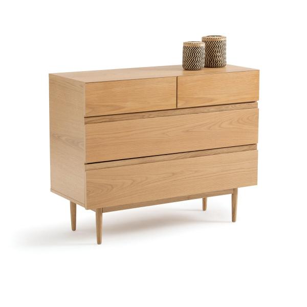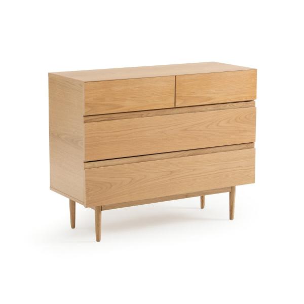Cette commode aux lignes épurées, de style contemporain, s'intégrera facilement dans tous les intérieurs. À la fois esthétique et très fonctionnelle, elle offre de bonnes capacités de rangement grâce à ses 4 tiroirs.