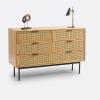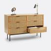 - Structure des tiroirs en frêne massif, façades en cannage naturel finition vernis nitrocellulosique.