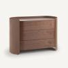 La commode Firmo en noyer et cuir emprunte les codes des années 50 avec ses courbes qui adoucissent les volumes.