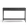 La console en métal et cuir Réalto. Avec ses façades tiroirs recouvertes de cuir et son fin piètement métal, la console Réalto apportera une alliance de caractère et de légèreté à votre intérieur.