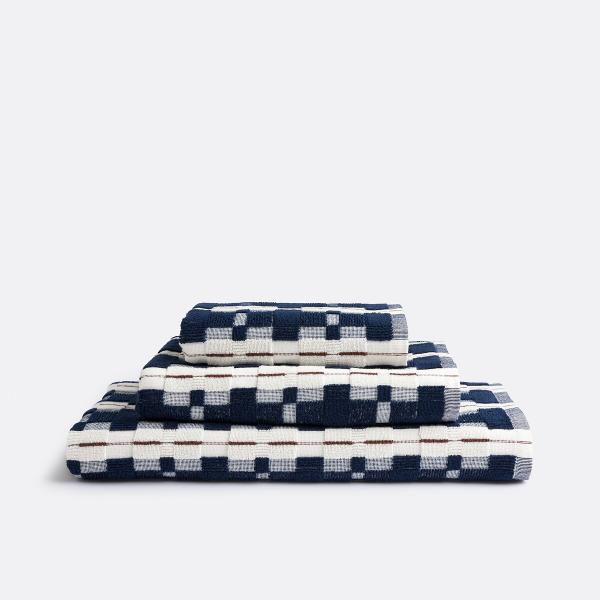 Drap de bain éponge jacquard, Meiri Bleu + écru 70x140 cm