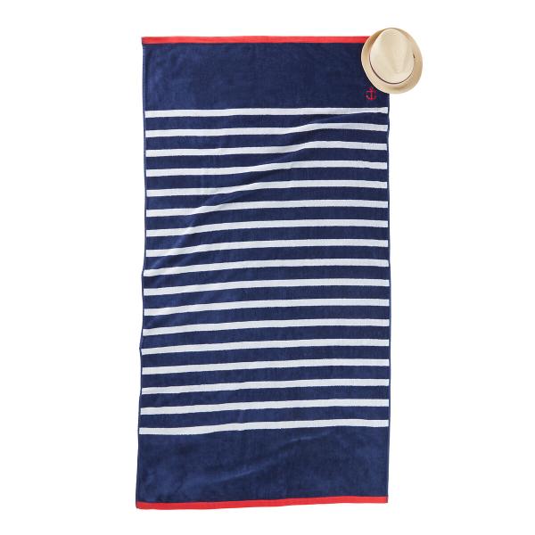 Drap de plage, Marinière Bleu/blanc T. Unique
