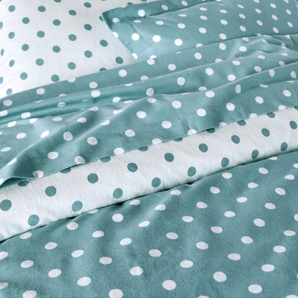 Drap flanelle imprimé pois, Clarisse Céladon/blanc 240x290 cm