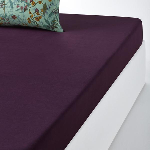 Drap housse coton lavé, Béronise Prune 140x190 cm
