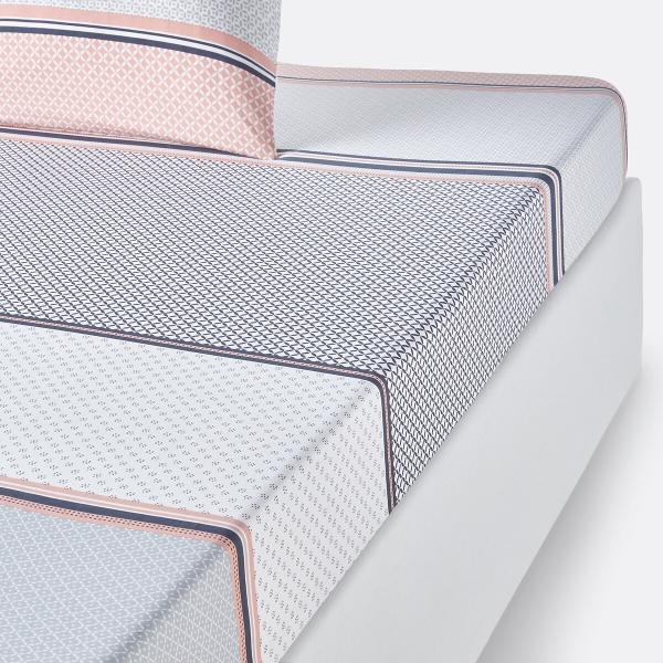Drap housse coton, Nayma Gris/rose poudrée 140x190 cm