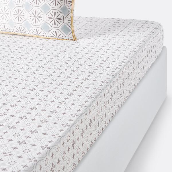 Drap housse coton, Salernes Imprimé gris 90x190 cm