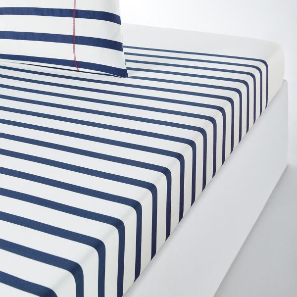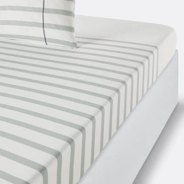 Drap housse pur coton, Malo Blanc/gris 140x190 cm