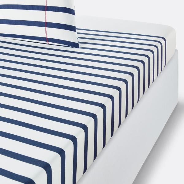Drap housse pur coton, Malo Blanc/marine 180x200 cm