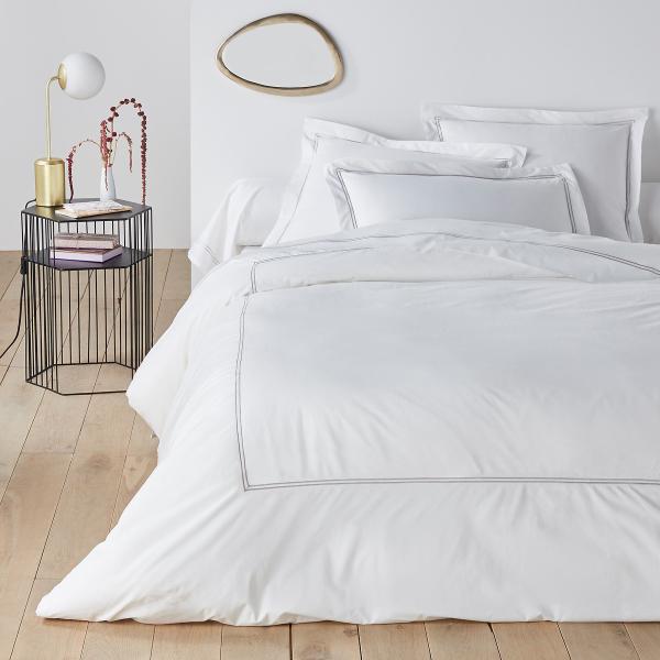 Drap plat, percale pur coton, Palace Blanc/bourdon gris clair 240x290 cm