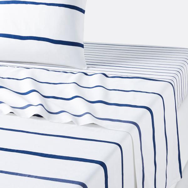 Drap pur coton, Glenans Bleu/blanc 180x290 cm