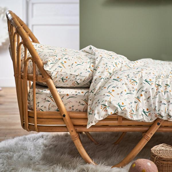 Drap-housse coton biologique, Miria Imprimé fleurs 140x190 cm