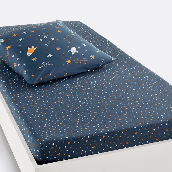 Drap-housse coton, Gaston Imprimé bleu 90x140 cm