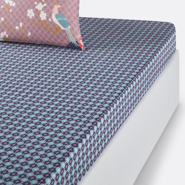 Drap-housse coton, Miss China Imprimé parme 140x190 cm