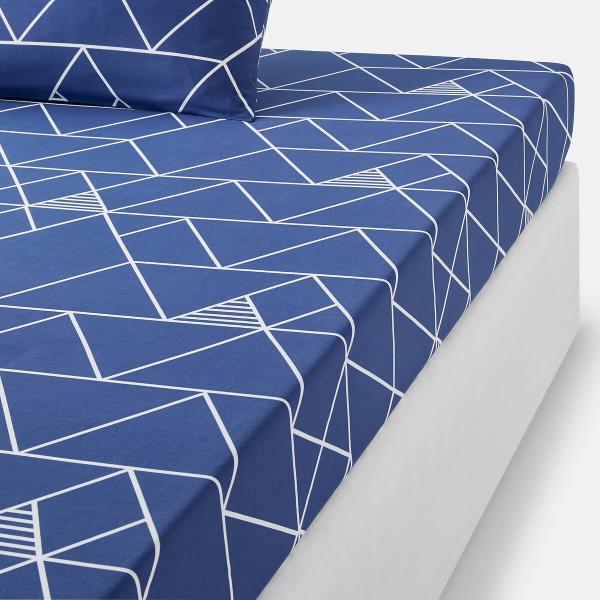 Drap-housse coton, Odin Bleu/blanc 140x190 cm