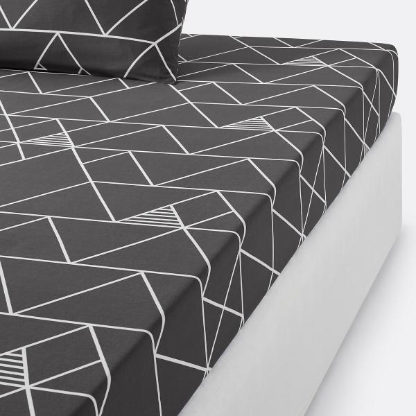 Drap-housse coton, Odin Gris/blanc 90x190 cm