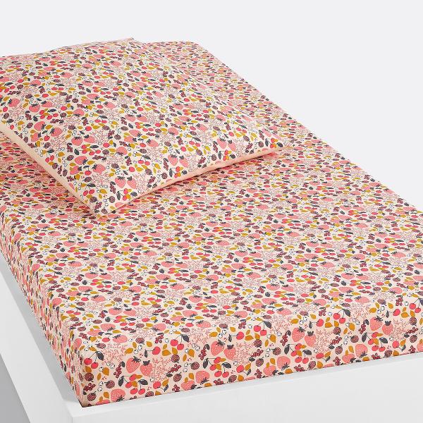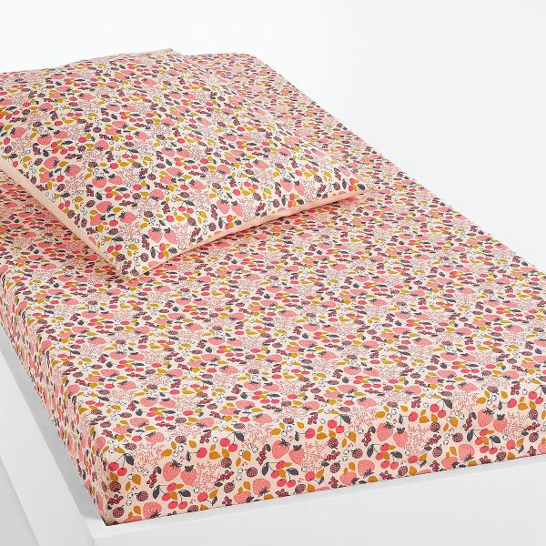Drap-housse enfant, Fraise Imprimé rose 90x190 cm