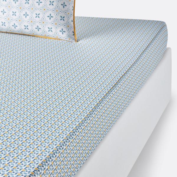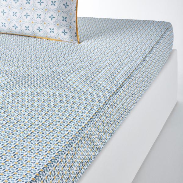 Drap-housse percale, Teyben Imprimé bleu 140x190 cm