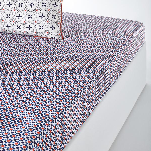 Drap-housse percale, Zehia Blanc/bleu/orange 140x190 cm