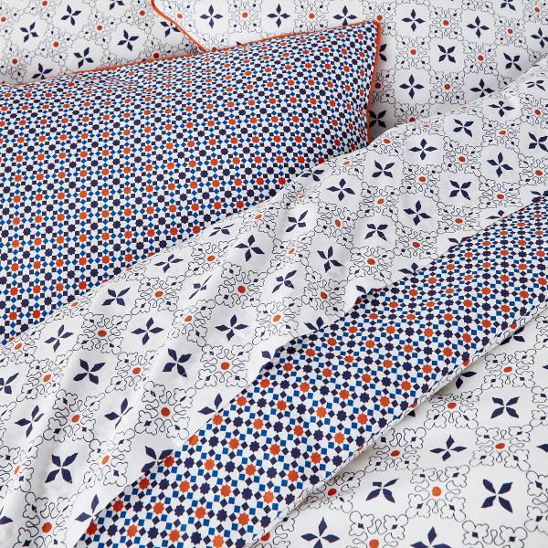 Drap-housse percale, Zehia Blanc/bleu/orange 160x200 cm