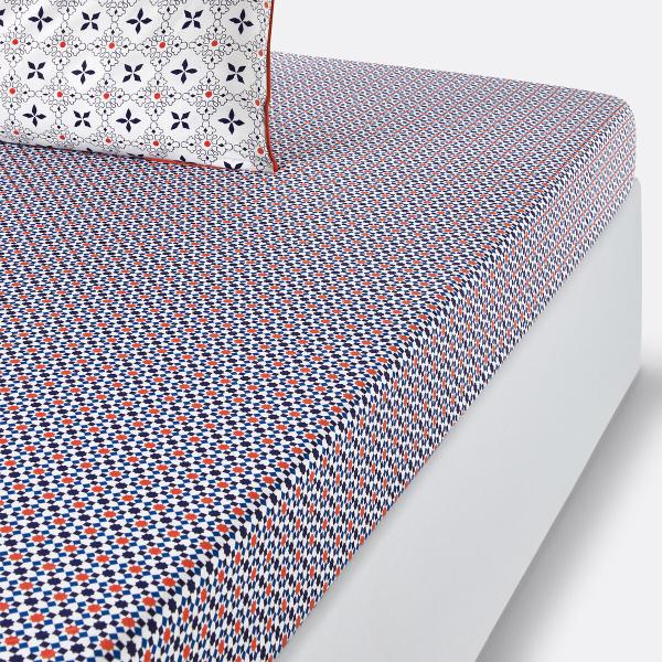 Drap-housse percale, Zehia Blanc/bleu/orange 180x200 cm