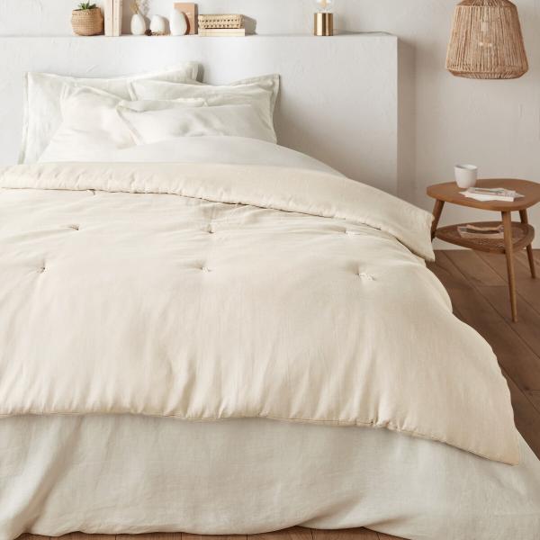 Édredon, lin lavé, Abella Ecru 90x190 cm