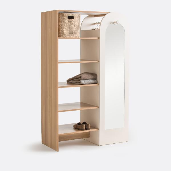 Le dressing smart* Zaria fait partie de notre collection Les Ingénieux. Des créations pleines d’idées pour rendre la vie plus simple et le quotidien plus beau, imaginées par nos designers à Roubaix.Contemporain. Compact. Fonctionnel. Le dressing Zaria associe 7 étagères, 1 penderie réversible de gauche à droite et un grand miroir avec patère. Pour gagner beaucoup de place sans perdre aucun espace.