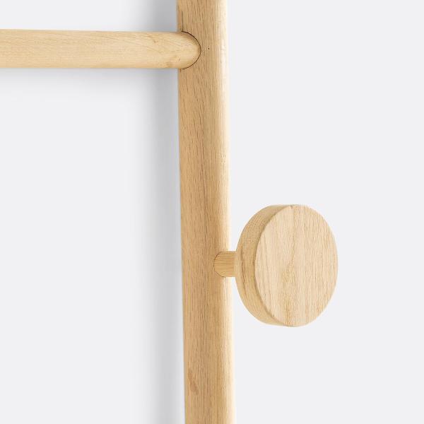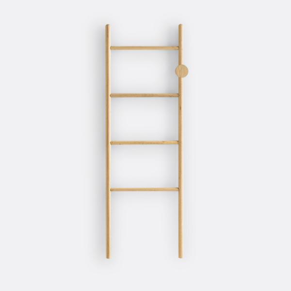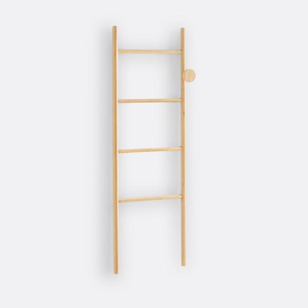 Avec son design aux inspirations scandinaves, ses 4 barres de penderie et sa patère ronde fixe, cette échelle porte-serviettes est l'équipement phare et indispensable dans une salle de bain.